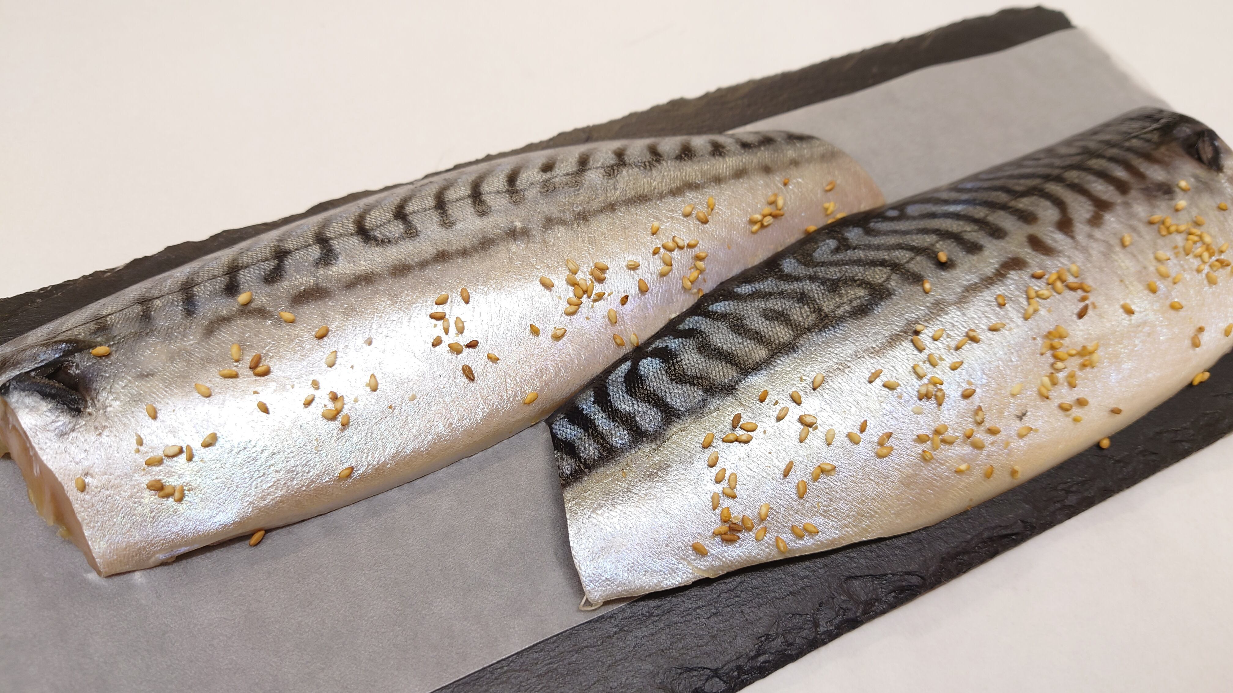 ノルウェー産の大型で脂乗り良好なさばより干物や漬け魚に適している素材を厳選し中でも身だけでなく腹に厚みのある原料を一枚一枚手作業にて加工してます。口いっぱいに旨味と脂が広がります。着色料不使用の本みりんを主とした甘みが特徴のみりん干しは素材の旨味は引き出してくれるだけではなく焼き上がりの「照り」に金ゴマの「香り」も相まって食を楽しめる一品となってます。