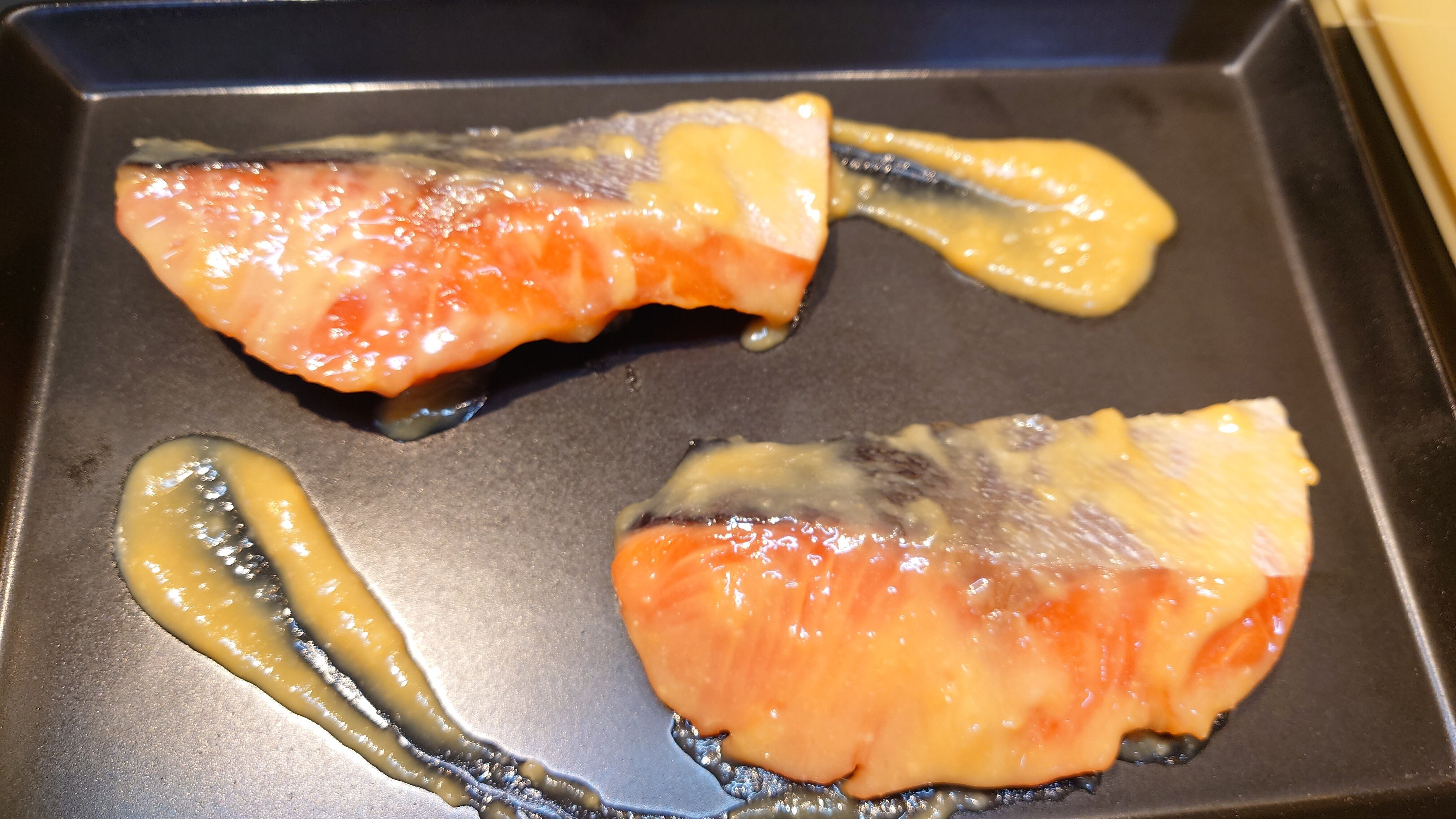 紅鮭(ロシア産)、米みそ(国内製造)、還元水飴、砂糖、発酵調味料、塩こうじ、たん白加水分解物、大豆、米、食塩/酒精、酸化防止剤(V・C)